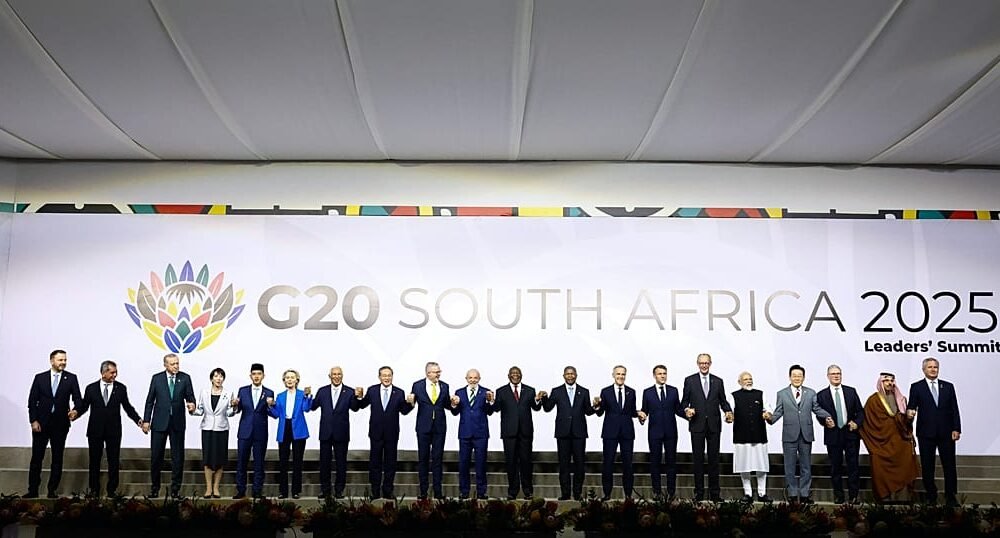 World leaders from the Group of 20 rich and developing economies posed for a photo at the summit in South Africa on Saturday. This first G20...