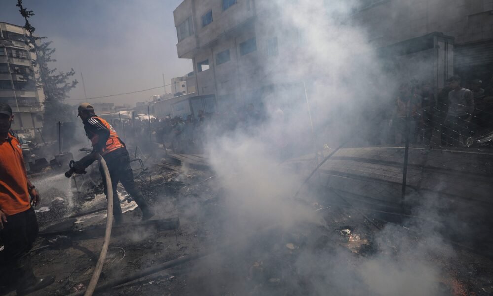 A child burns to death following the attack on school-turned-shelter in Gaza City. At least 10 people have been killed in an Israeli attack that sparked...