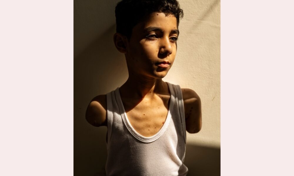 The winning photo depicts nine-year-old Mahmoud Ajjour, whose arms were severed in an Israeli attack in Gaza last year. The solemn portrait of a nine-year-old Palestinian...