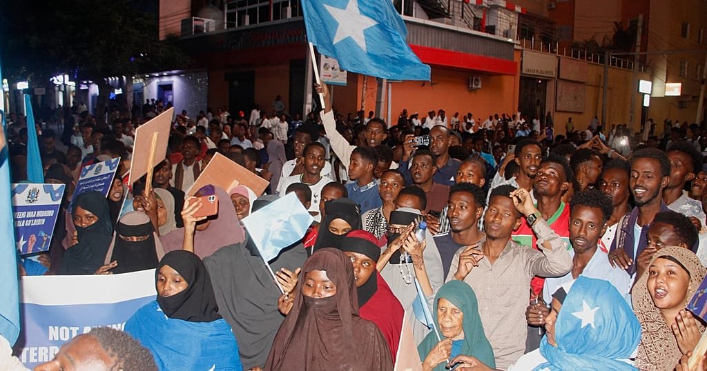 Hundreds of protesters gathered in Mogadishu on Thursday night to denounce Israel’s recognition of Somaliland, chanting patriotic songs and waving Somali flags in a show of unity.
